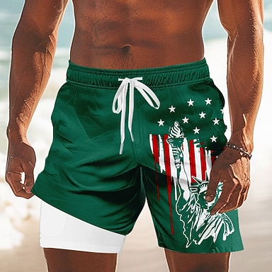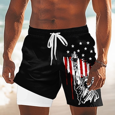 Per uomo Bandiera Americana 4 luglio, 250° anniversario degli Stati Uniti 1776 Pantaloncini foderati Pantaloncini da bagno 2 in 1 Pantaloncini da mare Misura del girovita medio Hawaiano Vacanza Ferie