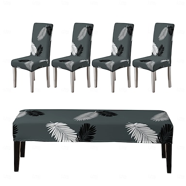 Set di fodere per sedie da pranzo e fodere per panche stampate, adatte per sedie da pranzo, include 5 pezzi, 4 fodere per sedie e 1 fodere per panca.