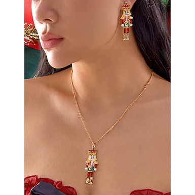Set di gioielli natalizi da donna a forma di schiaccianoci, collana e orecchini a forma di soldato smaltati in tonalità oro, accessorio festivo per feste invernali, regali &abiti