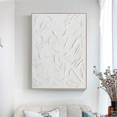 Grande dipinto a olio astratto sulla spiaggia bianca su tela dipinto a mano con texture, decorazione da parete per camera da letto, dipinto bianco personalizzato fatto a mano, decorazione da parete di