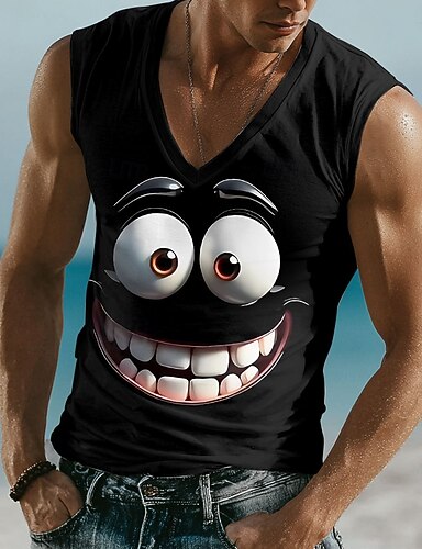 Per uomo 3D Emote divertenti Maglietta Senza Maniche maglietta Stampa 3D Scollo a V Camicia Tropicale All'aperto Vacanza Camicia hawaiana Nero 1 Nero 3 Nero 2 Estate Primavera Abbigliamento S M L XL