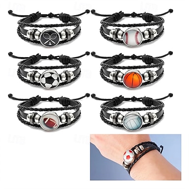 Braccialetto sportivo multistrato in pelle, cinturino regolabile in corda intrecciata per tifosi di calcio, basket e baseball, gioiello sportivo ideale come regalo per bambini, ragazzi e adulti,