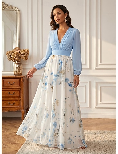 Linea ad A Lunghezza alla caviglia Vestito da Festa Abito da Cocktail Abito da invitata a nozze Abito da cerimonia per signora Manica Lunga Scollo a V Elegante Vintage Festa Serata Formale
