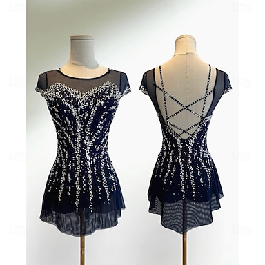 Abito da pattinaggio artistico Per donna Ragazze Pattinaggio sul ghiaccio Vestito Nero Schiena aperta Rete Alta elasticità Allenamento Competizione Vestiti da pattinaggio sul ghiaccio Classico