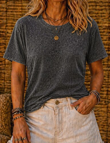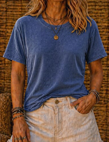 Per donna Mini abito Abito lavato Vestito Casual Vestito T-Shirt Essenziale Classico Quotidiano Weekend Vestibilità regolare Semplice Manica Corta Girocollo Blu Estate Primavera
