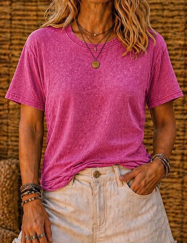 Per donna Mini abito Abito lavato Vestito Casual Vestito T-Shirt Essenziale Classico Quotidiano Weekend Vestibilità comoda Semplice Manica Corta Girocollo Rosa Estate Primavera