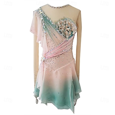 abito da pattinaggio artistico a maniche lunghe sfumato, costume da competizione personalizzato