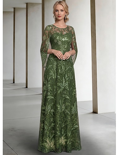 Abito A-Line per madre della sposa elegante e semplice scollatura alta lungo fino al pavimento in tessuto elastico maniche lunghe con pieghe e applicazioni taglia personalizzata gratuita