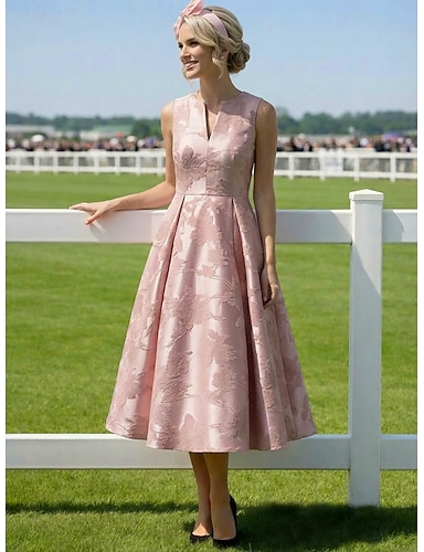 Linea ad A Lunghezza alla caviglia Lunghezza Tè Abito Derby Abito da cerimonia per signora Senza Maniche Scollo a V Elegante Vintage Formale Derby del Kentucky Jacquard con Pieghe