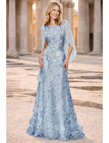 Tubino Colonna Lunghezza al pavimento Abito da invitata a nozze Abito Formale Abito da sera Abito da cerimonia per signora Mezza Manica Scollo a Barca Taglie Forti Ospite di nozze Chiffon Pizzo con
