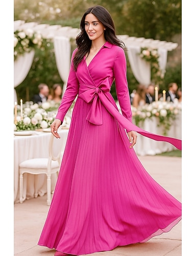 Linea ad A Lunghezza al pavimento Abito in Raso Abito da invitata a nozze Abito Formale Abito da cerimonia per signora Manica Lunga Colletto a Camicia Elegante Vintage Formale Ospite di nozze Chiesa