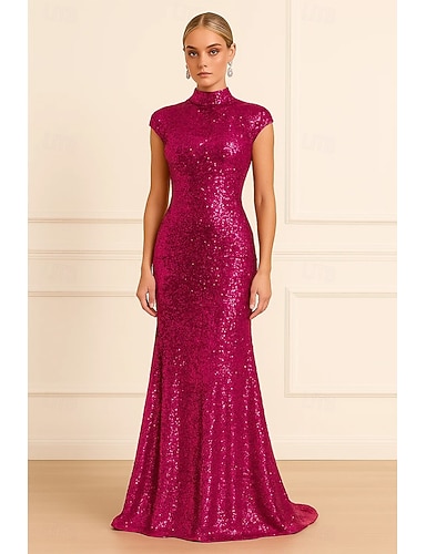 Sirena Tromba Strascico a Terra Abito da Sera Elegante Matrimonio informale / diurno Semi-formale / Cocktail Manica a Cappuccio Collo Alto Matrimonio Formale Con Paillettes con Glitter