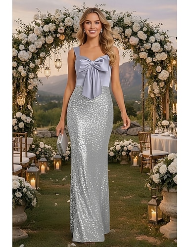 Abito da ospite per matrimoni A-Line fino al pavimento Abiti formali Abito da sera Abito per la madre della sposa maniche corte scollo quadrato elegante vintage taglie forti spandex con paillettes