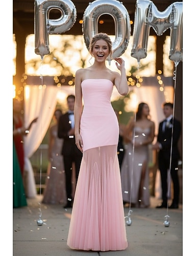 Linea ad A Lunghezza al pavimento Abito da Ballo Vestito da Festa Abiti da Ballo Elegante Floreale Senza Maniche Senza Spalline Formale Tulle Senza schiena con Fiori 3D
