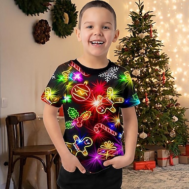 Da ragazzo 3D Pop art Maglietta di Natale maglietta T-shirt Manica corta Estate Primavera Di tendenza Essenziale Bambino 4-12 anni Girocollo Esterno Informale Giornaliero Standard