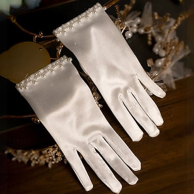 Terilene Lunghezza al polso Guanti Elegante Con Perla Finta / Colore puro Guanti da sposa / eleganti