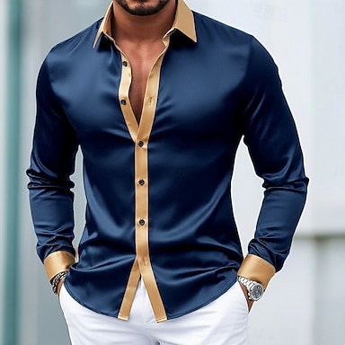 Per uomo Camicia Camicia in raso Camicia elegante Camicia casual Camicia con Bottoni Camicia da Ballo Blocco di colori Formale Matrimonio Nero Bianco Vino Blu marino Manica Lunga Bavero Primavera