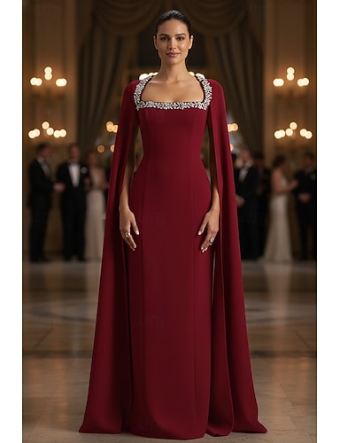 Tubino Colonna Lunghezza al pavimento Abito Formale Abito da sera Abito a mantella Abito da ballo con mantello Abito da Sera Abito formale Elegante Senza Maniche Senza Spalline Formale Raso con