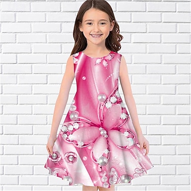 ragazze' 3D Farfalla Abito Senza Maniche Estate Primavera Vacanza Quotidiano Ferie Principessa Bello Dolce Bambini 4-12 Anni Vestito Casual Abito a trapezio Lunghezza al ginocchio Vestibilità regolare