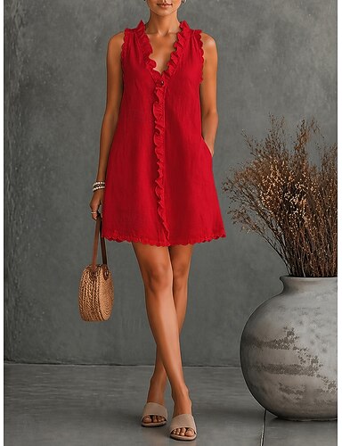 Per donna Mini abito Vestito Casual Abito in cotone Abito a trapezio Moda Moderno Quotidiano Vacanza Uscire Vestibilità regolare Semplice Senza Maniche Scollo a V Blu Nero Bianco Rosso Primavera