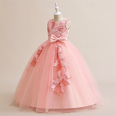 Bambini Ragazze Abito Vestito da Festa Tinta unica Senza Maniche Formale Performance Occasione speciale Nodo da legare Rete Moda Quotidiano Principessa Poliestere Maxi Vestito da Festa Vestito a