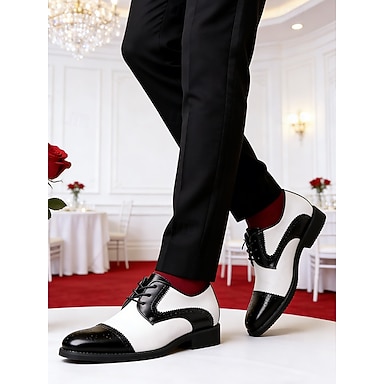 scarpe oxford da uomo in similpelle bianche e nere, eleganti scarpe da sposa per lo sposo e la festa di nozze