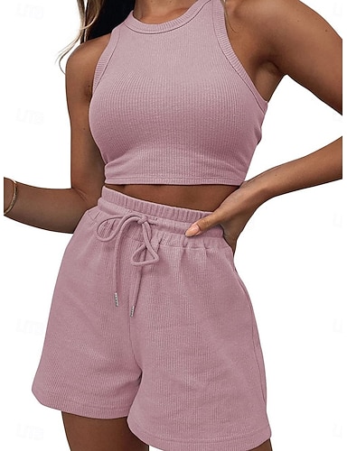 Per donna Set da due pezzi Canotta Set di Pantaloncini Senza Maniche Girocollo Semplice Moda Streetwear Casuale Quotidiano All'aperto Nero Verde chiaro Rosa Estate Vestibilità regolare