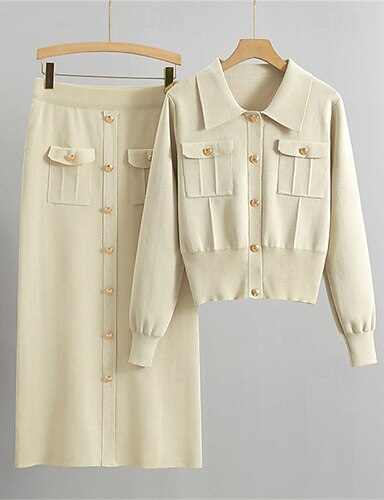 Per donna Abito blazer Due Pezzi Linea ad A Cocktail Ufficio Lavoro Elegante Manica Lunga Lunghezza al pavimento Lunghezza alla caviglia Dentellato Collo ripiegato Doppiopetto