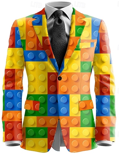 Per uomo Blocco di colori Giacca blazer Cappotto Di tendenza Confortevole Traspirante Casual Quotidiano Abbigliamento casual alla moda Casual Tasca Stampa 3D Bottoni Tutte le stagioni Dentellato