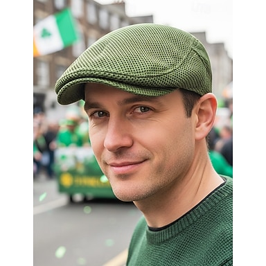 berretto da uomo in rete di poliestere verde, disponibile in più colori, perfetto per il giorno di San Patrizio e per l'abbigliamento casual quotidiano