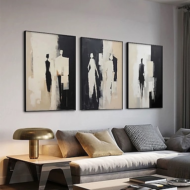 Fatto a mano Dipinto a Olio Dipinta a mano Orizzontale Astratto Persone Contemporaneo Moderno Senza telaio interno (senza cornice)