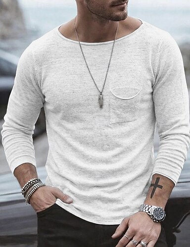 Per uomo Maglietta Waffle Maglietta Maglietta a Maglia Waffle Camicia a Maniche Lunghe Manica Lunga Girocollo Primavera & Autunno Semplice Moda Designer Essenziale Tasca Frontale Vacanza Streetwear