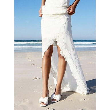 scarpe da sposa eleganti in raso con tacco a spillo, punta a punta, cinturino posteriore con fiocco, per la sposa che si sposa in chiesa