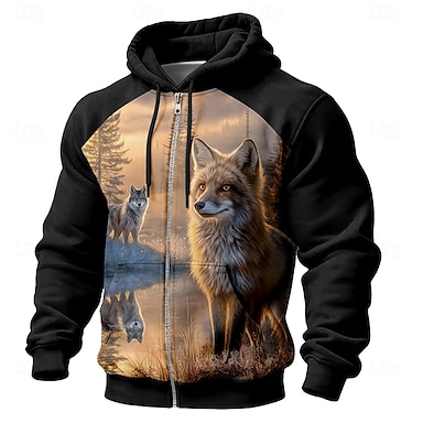 Per uomo Lupo Felpa Tropicale 3D Da caccia Collo Alto All'aperto Abbigliamento casual alla moda Nero 1 Nero 2 Con zip Autunno Inverno progettista S M L XL XXL 3XL