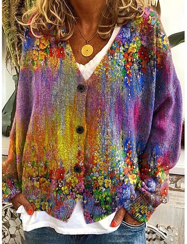 Per donna Cappotto Giacca Casual Caldo Confortevole Stampato Moda Moderno Casual Floreale Uscire Weekend Monopetto Regolare Scollo a V Vestibilità regolare Manica Lunga Capispalla Giallo Rosa Verde