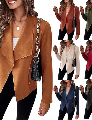 Per donna Giacca Casual Confortevole Traspirante Tasca Moda Casual Semplice Vacanza Streetwear Casuale Abbigliamento quotidiano Aperto davanti Corto Collo ripiegato Vestibilità regolare Manica Lunga