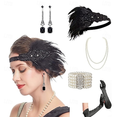 Vintage Anni 1920 Il grande Gatsby Fascia Flapper Set di accessori Charleston Piuma Costume Per donna Mascherata Addio al Nubilato Festival Adulti Guanti Fascia Tutte le stagioni