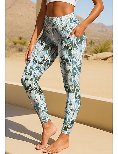 Per donna leggings da pilates Pantaloni fitness Leggings da palestra Tasche Bollo Tasche Laterali Pilates Palestra Allenamento in Palestra Pantaloni Collant Leggings Grafico Astratto Mimetico Verde