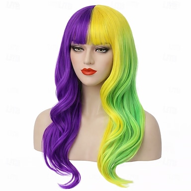Parrucca di Carnevale Viola Verde Gialla Mossi Lunghi Sintetica Parrucca per Festival Mardi Gras Parata Costume Cosplay Capelli per Donne