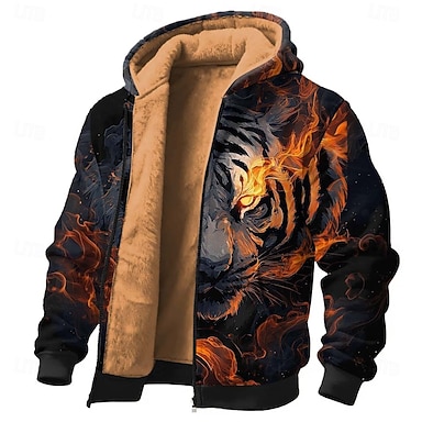 Per uomo Tigre 3D Pile Felpa con Cappuccio Giacca di pelle Felpa Classico Fantasia Girocollo All'aperto Campeggio Nero Blu scuro Con zip Autunno Inverno progettista S M L XL 2XL 3XL