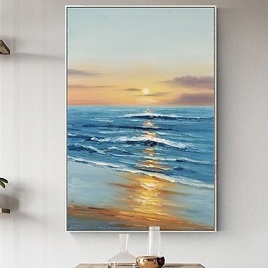 Pittura A Olio Fatta A Mano Dipinta A Mano Arte Della Parete Paesaggio Marino Astratto Tramonto Blu Oceano Decorazione Della Casa Arredamento Cornice Pronta Da Appendere
