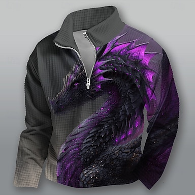 Per uomo Drago Stampa 3D Nido d'ape Felpa Moda Quotidiano Casual Fantasia Collo alla coreana Zip a un quarto All'aperto Casa Ufficio Lavoro Giallo Blu Viola Verde Con zip Autunno Inverno progettista