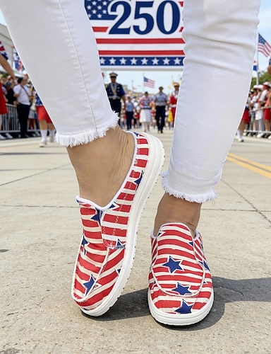 Scarpe in tela con laccetti rossi e blu per donna per il 250° Anniversario degli Stati Uniti – Sneakers casual patriottiche vintage per il Giorno dell'Indipendenza parate passeggiate in città viaggi