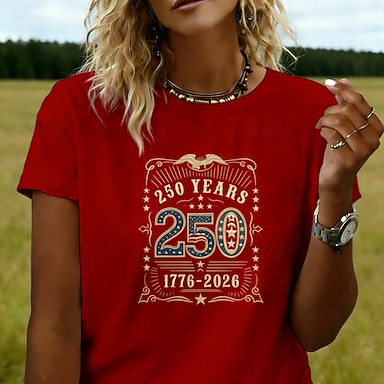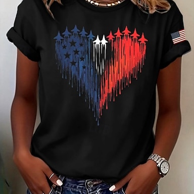 Giorno dell'Indipendenza Americana Per donna Maglietta Stampato Grafico Elegante Classico Casual Manica Corta Girocollo Top Regolari Quotidiano Sportivo Uscire Rosso Estate Primavera