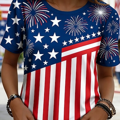 Giorno dell'Indipendenza Americana Per donna Maglietta Stampato Grafico Elegante Classico Casual Manica Corta Girocollo Top Regolari Quotidiano Sportivo Uscire Blu Rosso Estate Primavera