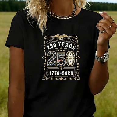 Giorno dell'Indipendenza Americana Per donna Maglietta Stampato Grafico Bandiera Lettera Vintage Elegante Classico Manica Corta Girocollo Top Regolari Quotidiano Blu Nero Bianco Grigio Estate