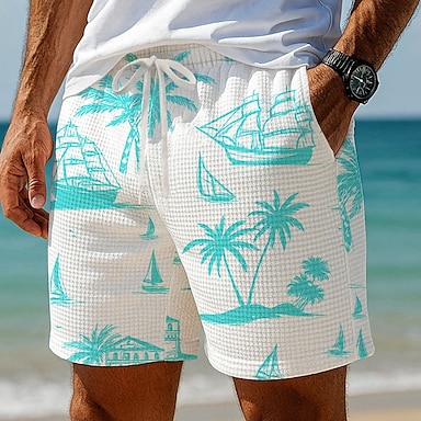 Per uomo Albero di Cocco Barca a vela Piante Tropicali Pantaloncini Waffle Pantaloncini da tuta Pantaloncini casual Misura del girovita medio Hawaiano Vacanza Jogging Allenamento Coulisse elastica in