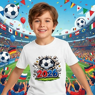 100% Cotone Bambini Ragazzi Bianco Grafico Calcio Magliette da calcio Maglietta Blusa Girocollo Manica Corta All'aperto Abbigliamento Quotidiano Moda Streetwear Designer Stampa Estate