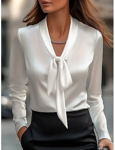Per donna Camicia in raso Camicia elegante Blusa Arricciato Tinta unica Elegante Lavoro Manica Lunga Scollo a V Top Regolari All'aperto Lavoro Nero Bianco Rosa Viola Primavera Autunno Inverno