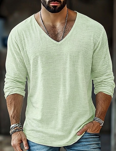 Per uomo Maglietta Maglietta in lino Manica Lunga Scollo a V Estate Primavera Primavera & Estate Tinta unica Semplice Testurizzato Quotidiano Casual Stile da Strada Puro Casuale All'aperto Streetwear